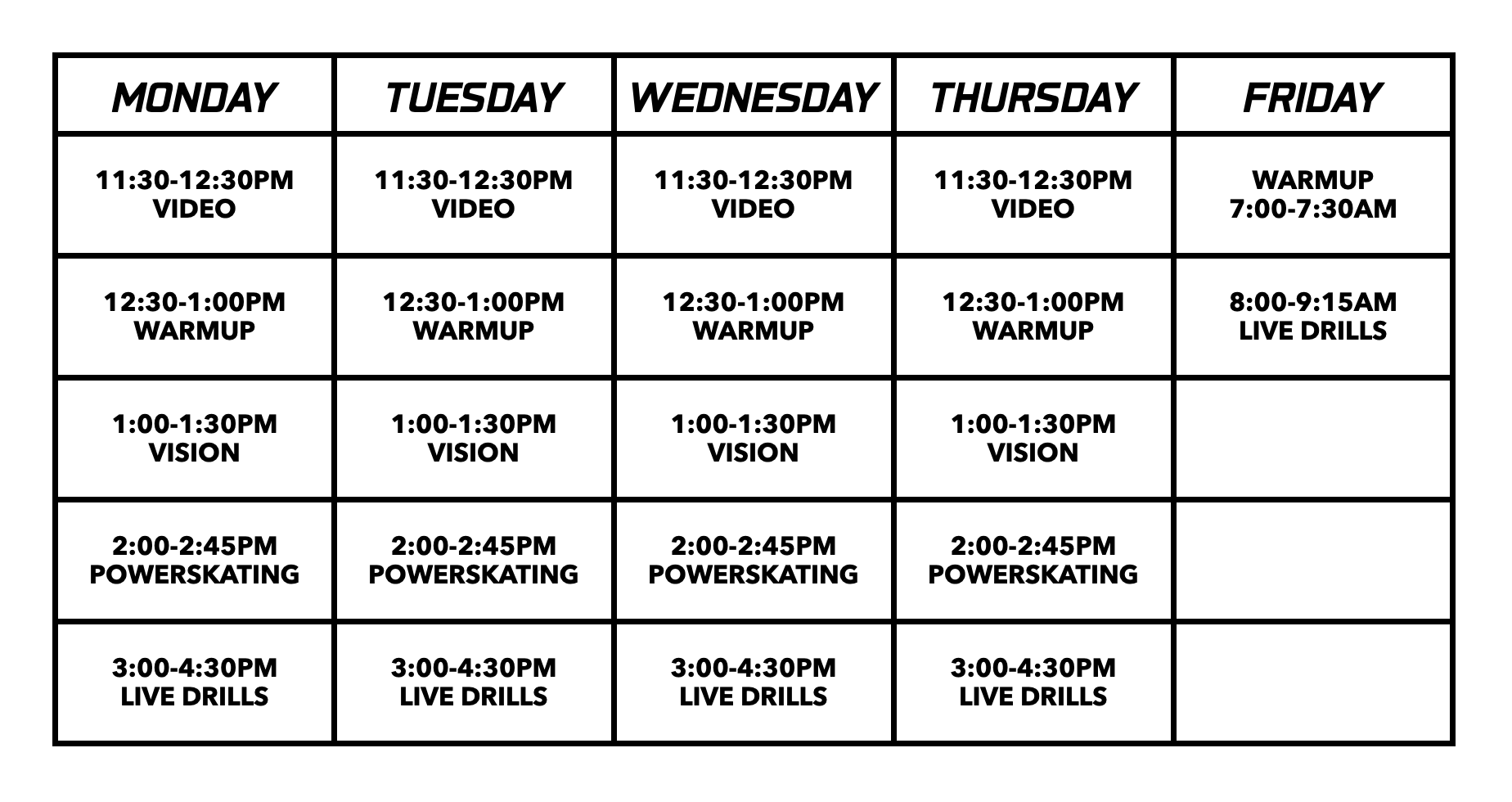 On-Ice Camp Schedule